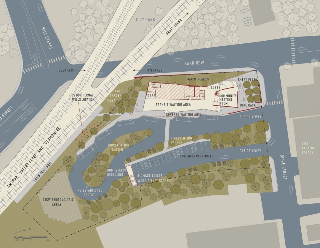 The John W. Olver Transit Center, located in Greenfield, Massachusetts, is the first net zero transit center in the United States. It was funded in part by the Federal Transit Administration (FTA) and the American Recovery and Reinvestment Act (ARRA). The 24,000-square-foot intermodal transit hub has introduced high-performance design to Franklin County, demonstrating a commitment to sustainability and ethical design. The project is a depot for regional and interstate bus lines, a station for Amtrak’s Vermonter and Valley Flyer lines, and an office for the Franklin Regional Council of Governments.
